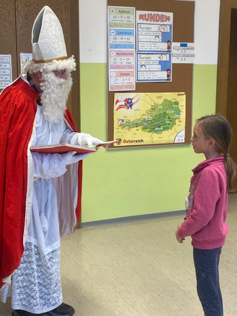 Pünktlich am 5. Dezember stand auch in diesem Jahr der Nikolaus vor der Schultür in Kalwang. Die Schüler freuten sich schon sehr auf seinen Besuch und hatten Lieder und Gedichte vorbereitet.