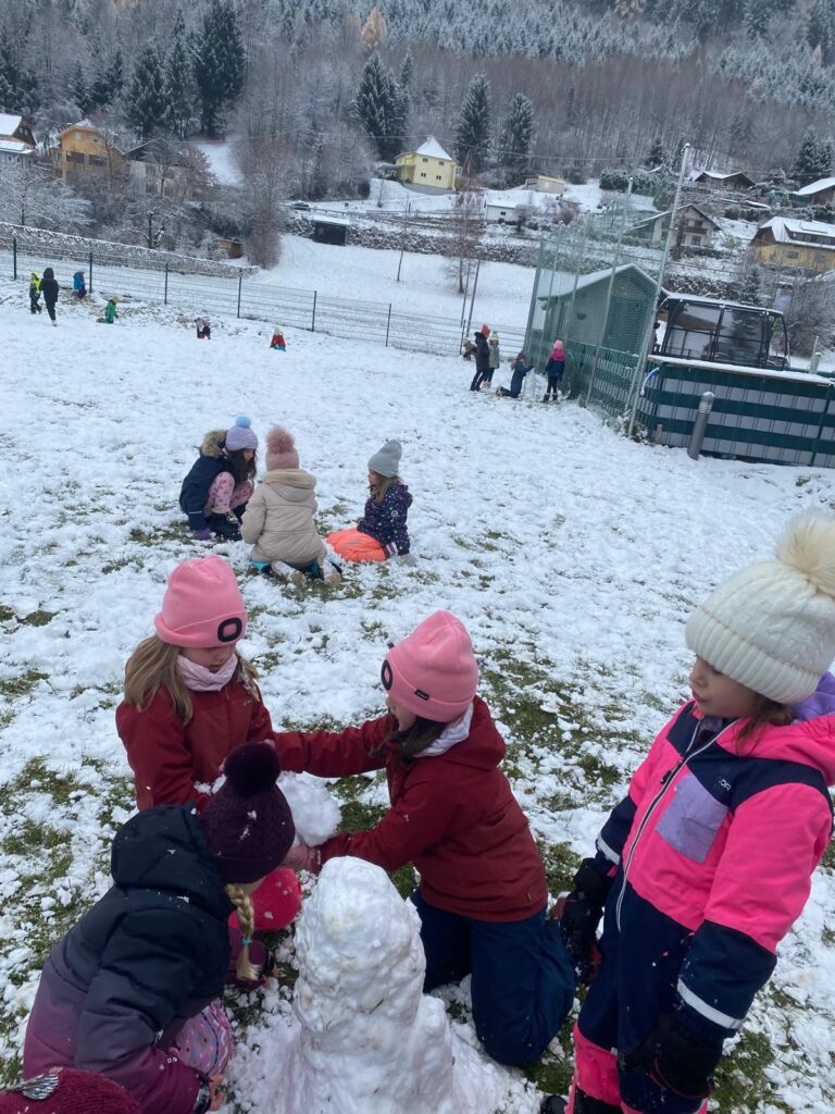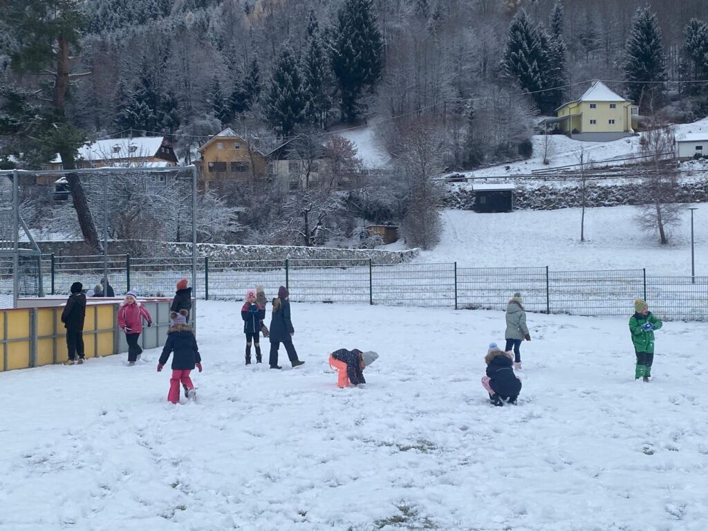 Die Schülerinnen und Schüler der VS Kalwang konnten es kaum erwarten, bis die Pause endlich begann. Begeistert nutzten die Kinder die Zeit, um im Schnee zu spielen und zu toben. Die Freude wurde noch größer, als die Pause länger dauerte als geplant.