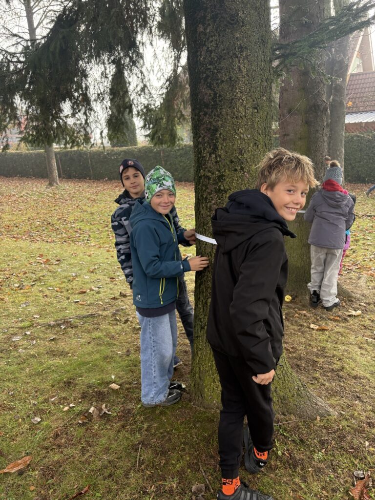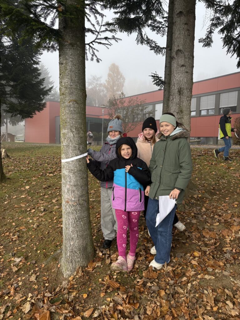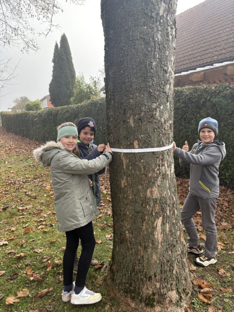 Die 4. Klasse beschäftigte sich im Mathematikunterricht mit dem Thema Umfang. Um das Gelernte praktisch umzusetzen, gingen die Kinder in den Schulgarten und nahmen dort die Bäume genau unter die Lupe.