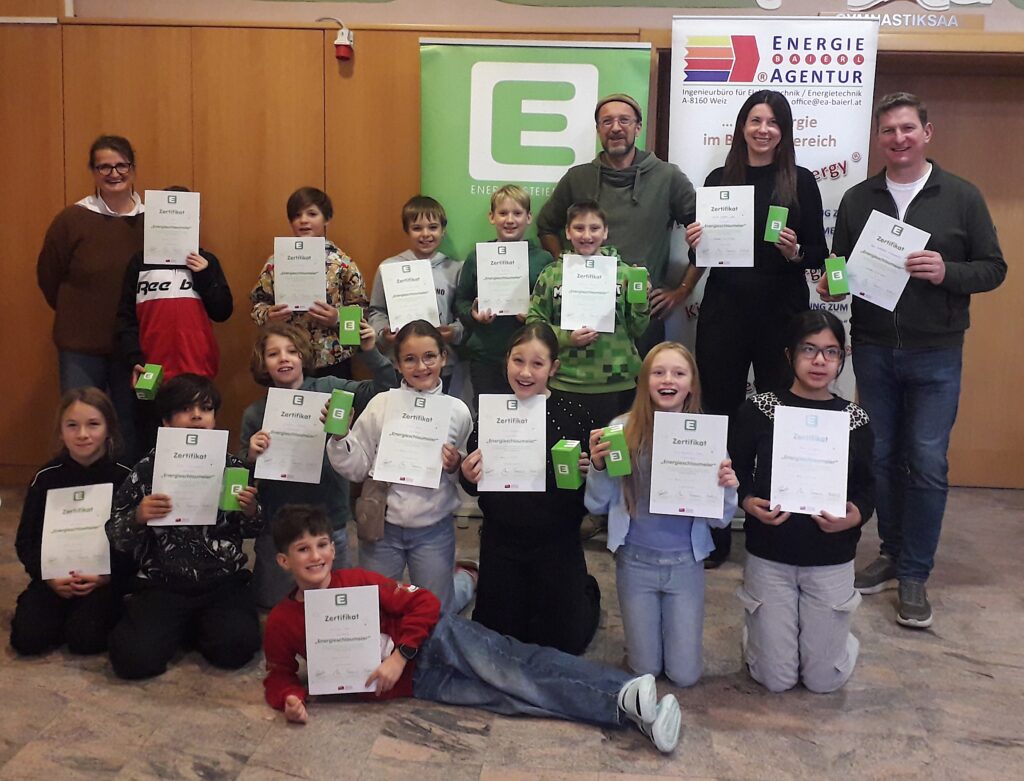 Mit der feierlichen Übergabe der begehrten Zertifikate und einer LED-Lampe an die neuen Energieschlaumeier durch Bürgermeister Andreas Kühberger, Cluster-Direktorin Julia Eder, BEd, Klassenlehrerin Dipl.-Päd. Stefanie Lanzmaier und dem Vortragenden Matthias Wild wurde die hochmotivierte Mitarbeit aller Beteiligten ganz besonders belohnt!